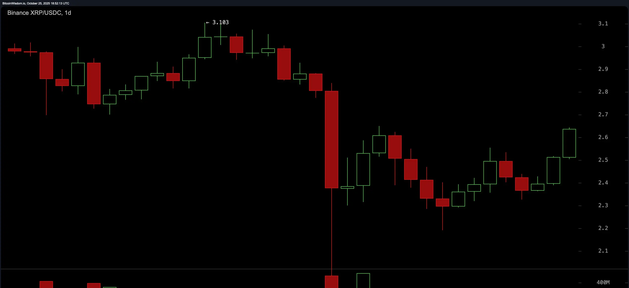 XRP/USDC عبر منصة معينة مخطط لمدة يوم واحد في 25 أكتوبر 2025.