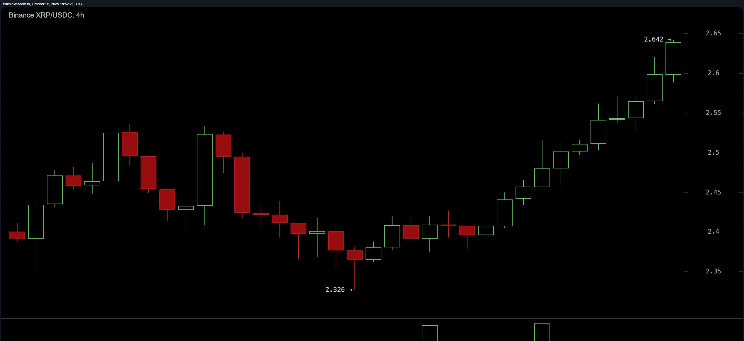 XRP/USDC عبر منصة معينة الرسم البياني 4 ساعات في 25 أكتوبر 2025.