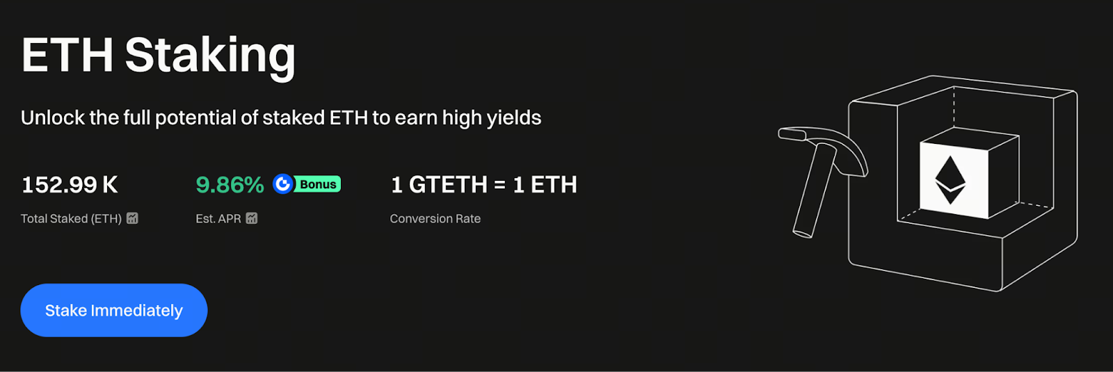 報酬はすべて毎日GTETHとして分配します。ユーザーは複利運用でステーキングを継続することも、いつでも償還して柔軟に管理することもできます。