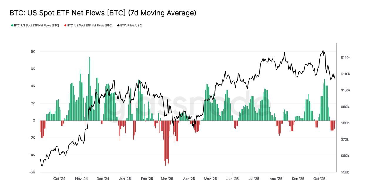同時に、米国の現物ビットコインETFは最近、ネット流出を経験しており、投資家のセンチメントが冷却する中で、しばしば地元市場の安値付近に集まっています。しかし、過去のサイクルでは、ETFのフローが安定またはプラスに転じるときは、通常、再度の蓄積と次の上昇段階と一致することが示されています。