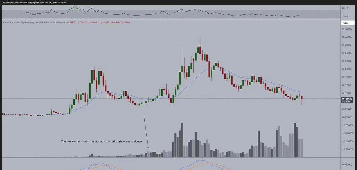 暗号資産アナリストはアルトコインに対してますます強気になっており、マクロ経済の状況が変化する中でブレイクアウトフェーズが差し迫っている可能性があると示唆しています。Crypto RoverとMichaël van de Poppeによると、連邦準備制度の量的引き締め(QT)サイクルの終了は、アルトコイン市場における次の爆発的なラリーを引き起こす可能性があり、これは2020年初頭を彷彿とさせる設定だ。Roverのチャートは、量的緩和(QE)が始まるたびに、暗号資産市場、特にアルトコインが急激な上昇トレンドに入ることを示しています。彼は現在、同じパターンが再び形成されていると信じています。「QTが終了すれば…アルトコインは爆発するだろう」とRoverは、流動性サイクルが歴史的に主要な暗号資産のラリーとどのように一致するかに言及しました。ヴァン・デ・ポッペはこの見解を繰り返し、現在のアルトコインの弱気市場が歴史上最も長く、ほぼ4年続いていることを指摘しました。彼は、このフェーズが極端な過小評価と投資家の疲労を生み出しており、これらの状況はしばしば急激な反転の前に発生すると主張しています。このサイクルを2019年から2020年のものと比較すると、彼はMACDの強気ダイバージェンスや上昇するRSIモメンタムといった重要な指標を、回復が近づいている兆候として指摘しています。ヴァン・デ・ポッペは、採用が依然として加速しており、新しい市場参加者が暗号資産に参入していることを強調し、これを「広範な機関統合の前の最後の簡単なサイクル」と呼んでいます。「アルトコインを嫌っているすべての人は、青チップを購入し、1年間手をこまねいているべきだ」と彼は付け加えました。彼はまた、SEIを彼のトップポートフォリオの選択肢の一つとして強調し、トークンが現在強いサポートを再テストしており、今後2ヶ月から4ヶ月の間にビットコインに対して3倍または4倍になる可能性があると指摘しました。市場のセンチメントは依然として抑制されており、流動性が潜在的なQEフェーズのもとで戻る準備が整いつつある中、両アナリストは同意している: 次の暗号資産強気市場の段階をアルトコインが先導する準備が整っている。