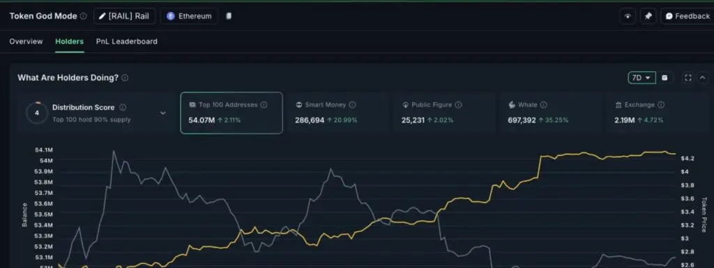 Nos últimos 30 dias, o preço do RAIL disparou quase 184%, superando a maioria das outras moedas de privacidade. Embora tenha corrigido 8,1%, essa queda é relativamente leve. Na verdade, nas últimas 24 horas, o RAIL ganhou mais 5,2%, indicando um ressurgimento do momento.