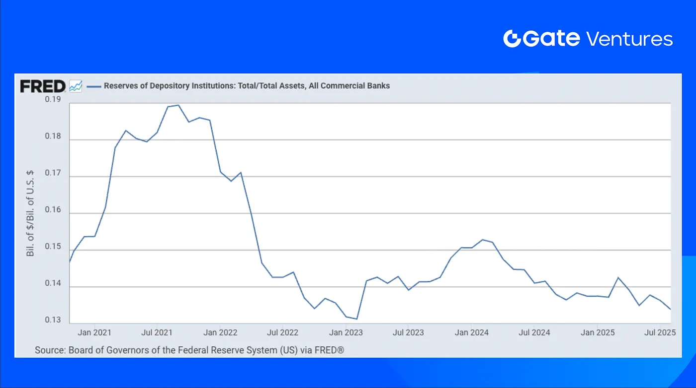 US Reserves of Depository Institutions as Percentage