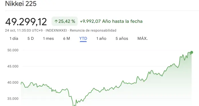 Sự phát triển của Nikkei 225 vào năm 2025. Nguồn: Google Finance