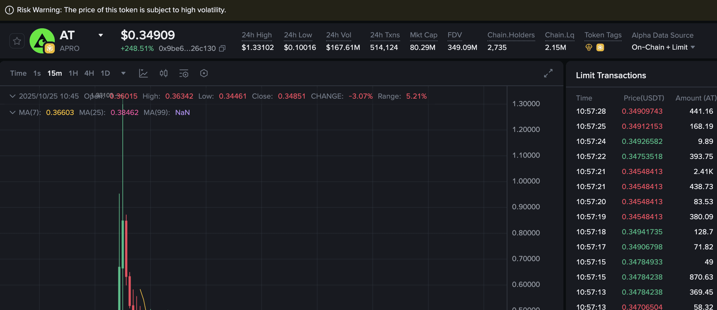 📊 $AT 15M 技術快照 💰 進入區間: $0.34 – $0.36 🛡️ 支撐: $0.31 / $0.28 🎯 目標: 🥇 $0.42 – 短期阻力 ⚡ 🥈 $0.55 – 潛在反彈區 🚀 🥉 $0.70+ – 強勢牛市突破目標 💥 ⚠️ 止損: 低於 $0.29 圖表顯示在首次上市激增後的低成交量整合 — 典型的炒作後冷卻。MA7略低於MA25,但結構正在形成一個靠近 $0.34 的圓形底部。如果成交量流入增加,蠟燭重新佔領 $0.38,我們可能會看到朝 $0.50 區間的幹淨反轉嘗試。