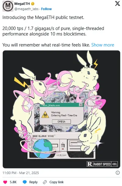 當 MegaETH 在 2025 年 3 月 推出其測試網時,結果顯示該網路穩定地處理 15,000 到 20,000 TPS