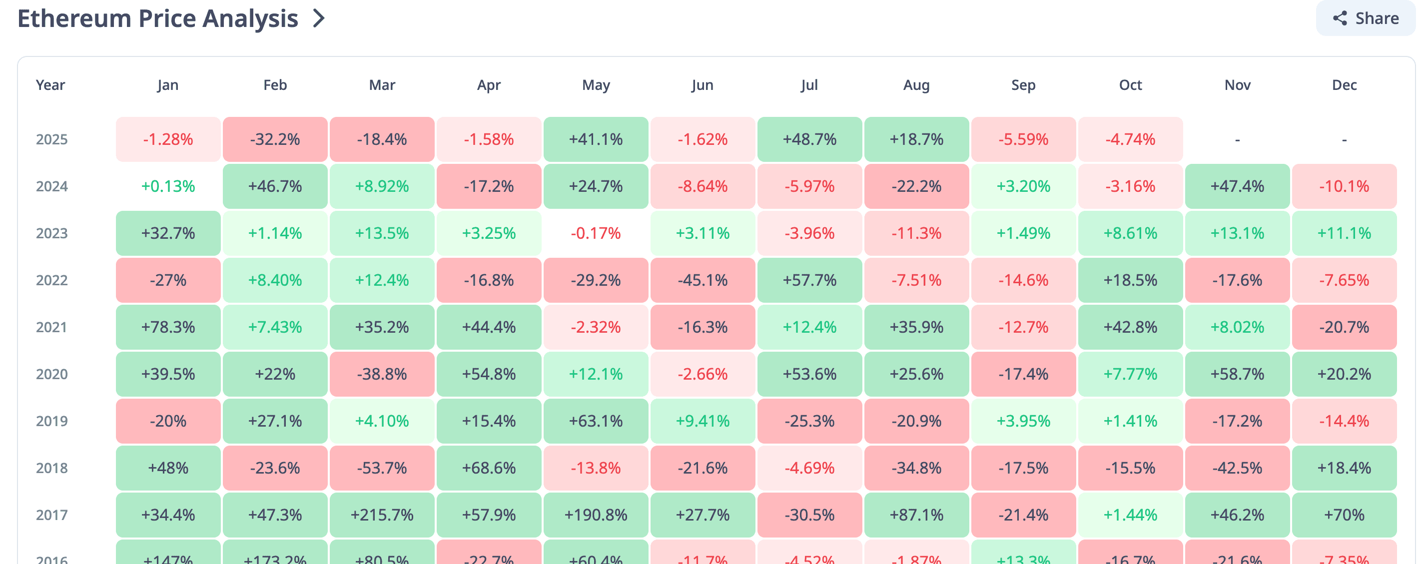 以太坊的价格在最近一个季度的季度回报表现不佳,但这款加密货币整体表现依然良好。如果第二季度和第三季度表现良好,第四季度通常也会收于正值,正如目前的情况一样。以太坊在2025年第二季度的平均正回报为36.5%,第三季度为66.7%,创下历史最佳。十月份的不良趋势导致今年下降了4.83%,但还有两个月多的时间,情况可能会有所改变。